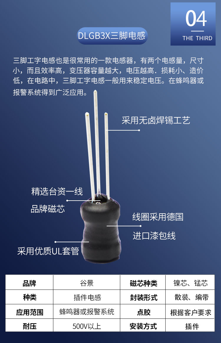 DLGBX工字電感:尺寸:4.5*7.0-18.0*20.0;感量:1uH-100mH;精度:J級(jí)(±10%)、K級(jí)(±10%)、M級(jí)(±20%);電流量:25mA-16.5A;特點(diǎn):小體積,高儲(chǔ)能;適用于:電視、電源供應(yīng)器、LED照明等。詳情咨詢:0512-65368862。工字電感,工字電感廠家,工字電感0406,工字電感0608,工字電感0810,工字電感0912,工字電感1010,工字電感1012,屏蔽工字電感,47uh工字電感,33uH工字電感,220uH工字電感,工字電感生產(chǎn)廠家,電感定制,屏蔽工字電感,杭州工字電感,南京工字電感