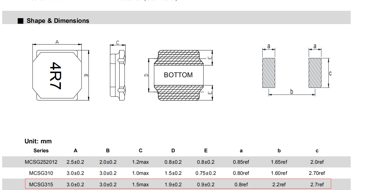 MCSG315Z1R0N貼片電感尺寸: