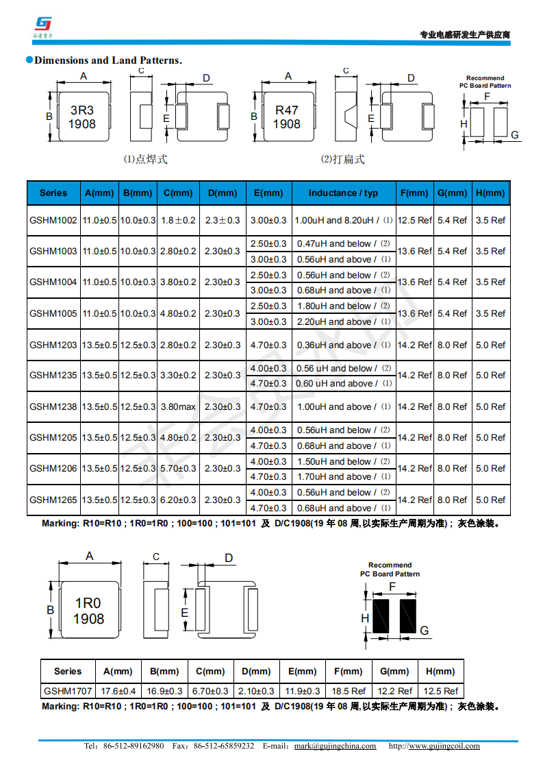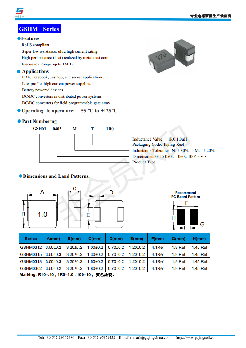 谷景GSHM一體成型電感可以替代國內外很多品牌電感,例如TDK、Wurth、Coilcraft、風華、順絡等品牌電感。