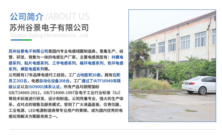 蘇州谷景電子有限公司,專業(yè)的貼片電感塑封型繞線電感器,色環(huán)電感,工字電感一體成型電感,高頻電感,高頻繞線電感,共模電感的電感生產(chǎn)廠家,公司擁有多年的代工廠經(jīng)驗,在電感的定制以及加工方面有著自己獨特的見解。